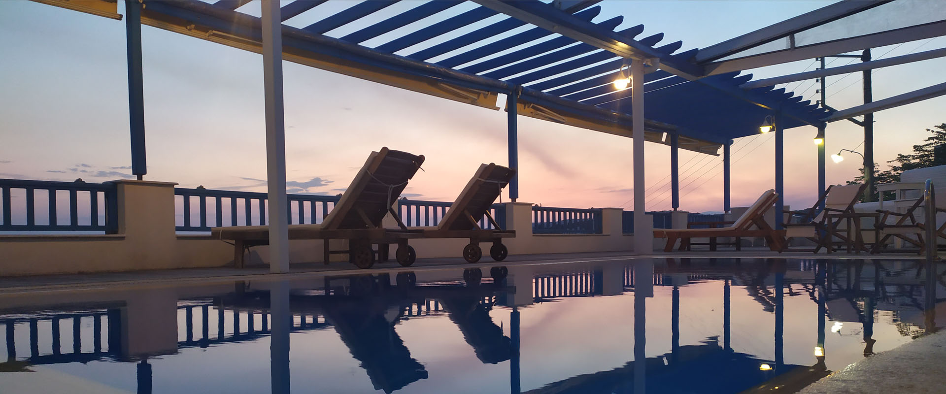 Δροσιστείτε και καθίστε αναπαυτικά γύρω από την ιδιωτική πισίνα, χαλαρώστε και αφήστε το βλέμμα σας να ταξιδέψει στο απέραντο γαλάζιο που απλώνεται μπροστά σας απολαμβάνοντας στιγμές ευεξίας και αναζωογόνησης κάθε στιγμή της ημέρας.